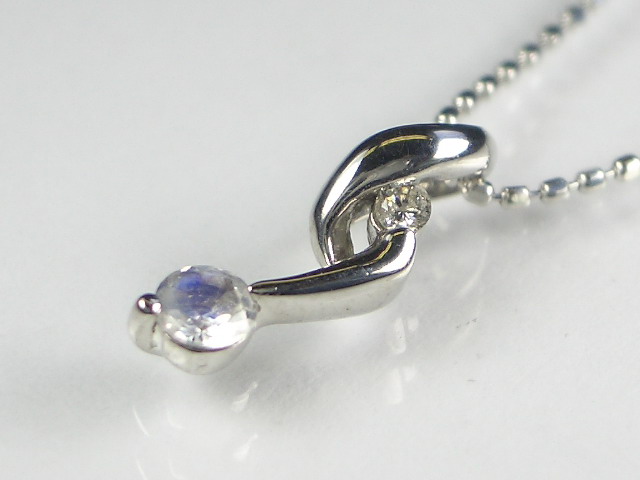 K18WGブルームーンストーン/ダイヤ ペンダント ネックレス 【誕生石6月】